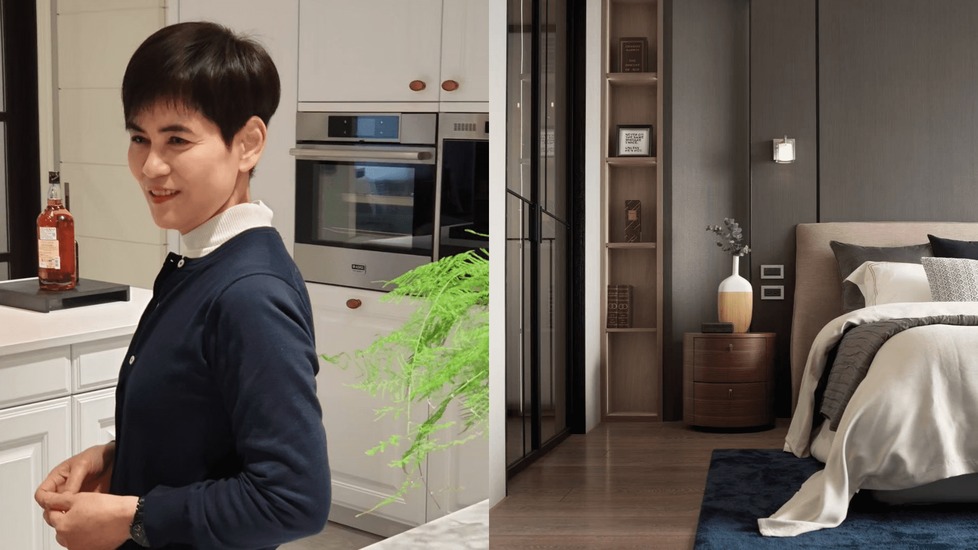 因為天然大理石紋裡的奧妙,容易在一個空間中展現氣勢。陳美貴時常選擇黑灰白色系石材,例如:印象深刻且常用的的稀罕石材有寒沐、銀河之星與皇家銀鑽帶出空間質量,與其他材質都很好搭,時常用以包覆櫃體表面,於實用機能上挹注風格,如此一來不僅為設計加乘,也體現大理石應用範圍之廣泛。