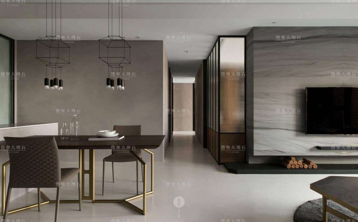 (圖/愛馬仕灰大理石電視牆面,搭配空間嚴選石材大小讓居家更畫龍點睛。來源:豐聖大理石)